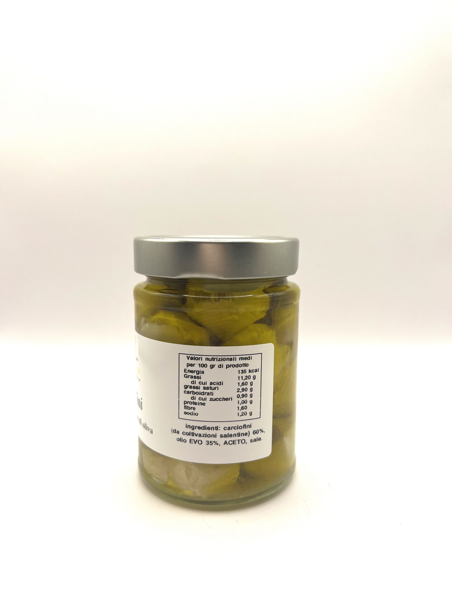Ingredienti: Carciofini (da coltivazioni Salentine) 60% – Olio Evo 35% – Aceto – Sale