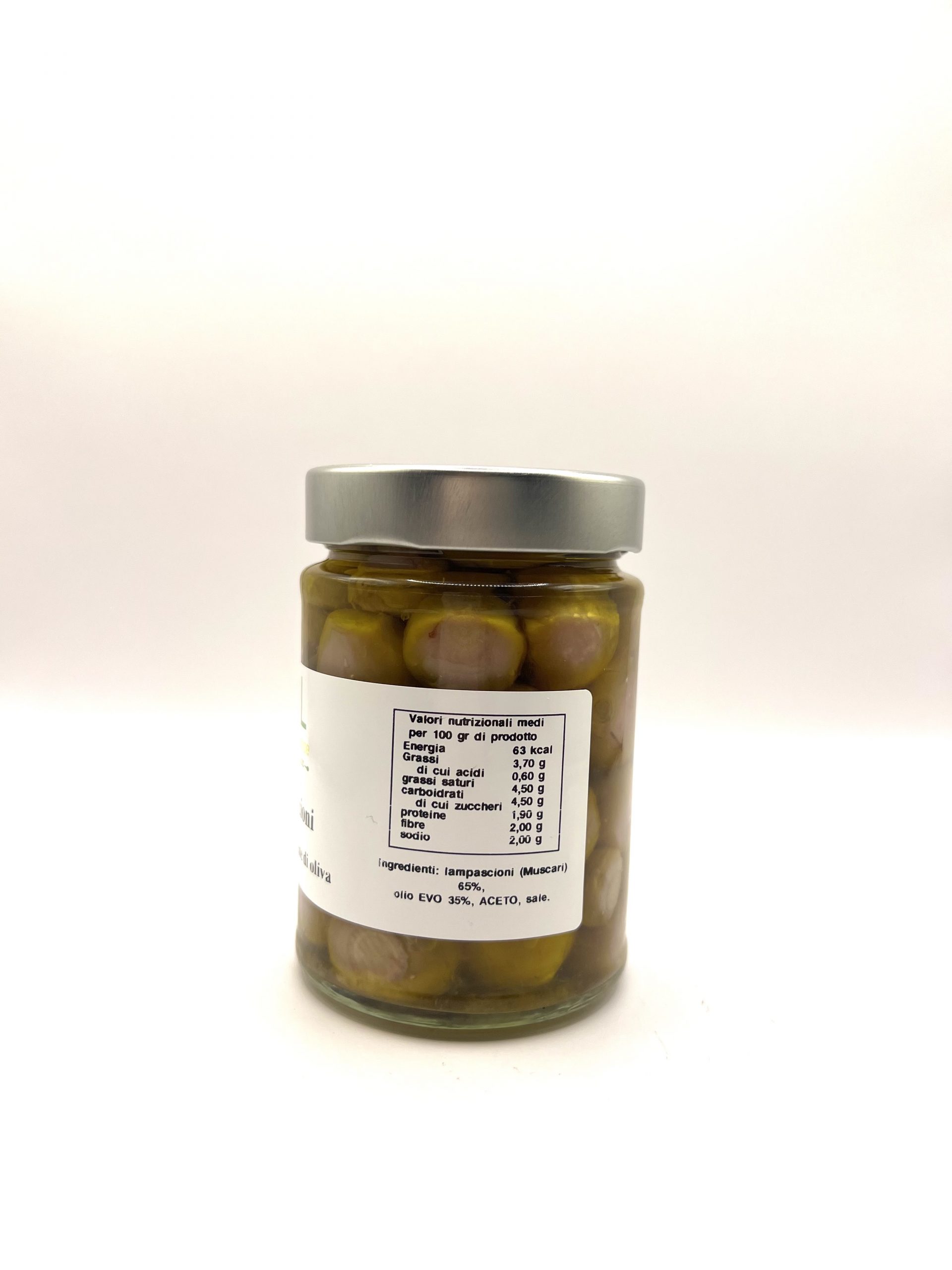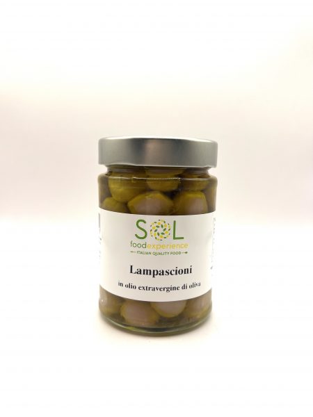 Ingredienti: Lampascioni (Muscari) 65% – Olio Evo 35% – aceto – sale